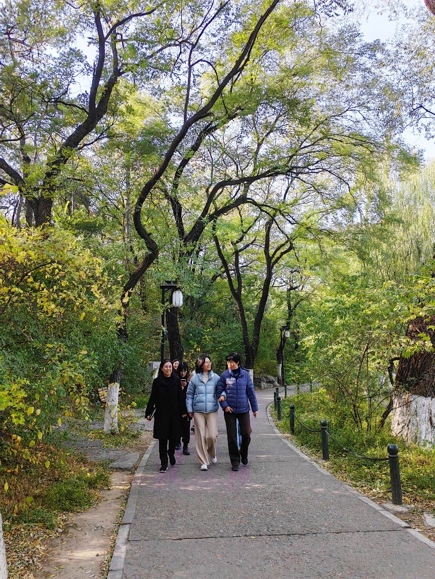 冯梅萍书记也参加了活动,大家从理科1号楼出发沿着未名北路一路向北,走过博雅塔和一体后环湖而行。一边走一边辨识着路边的植物。