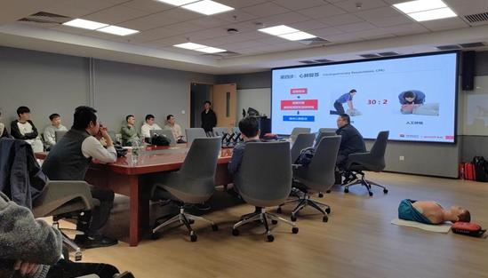 培训现场,授课老师用真实案例向参培人员介绍了掌握急救知识的重要性,并通过理论阐述和操作演示相结合的方式,借助人体模型和AED培训机进行现场演示,详细讲解了AED设备的工作原理和正确使用的方法、海姆立克急救法,以及心肺复苏急救法操作要领、手法及注意事项等内容。