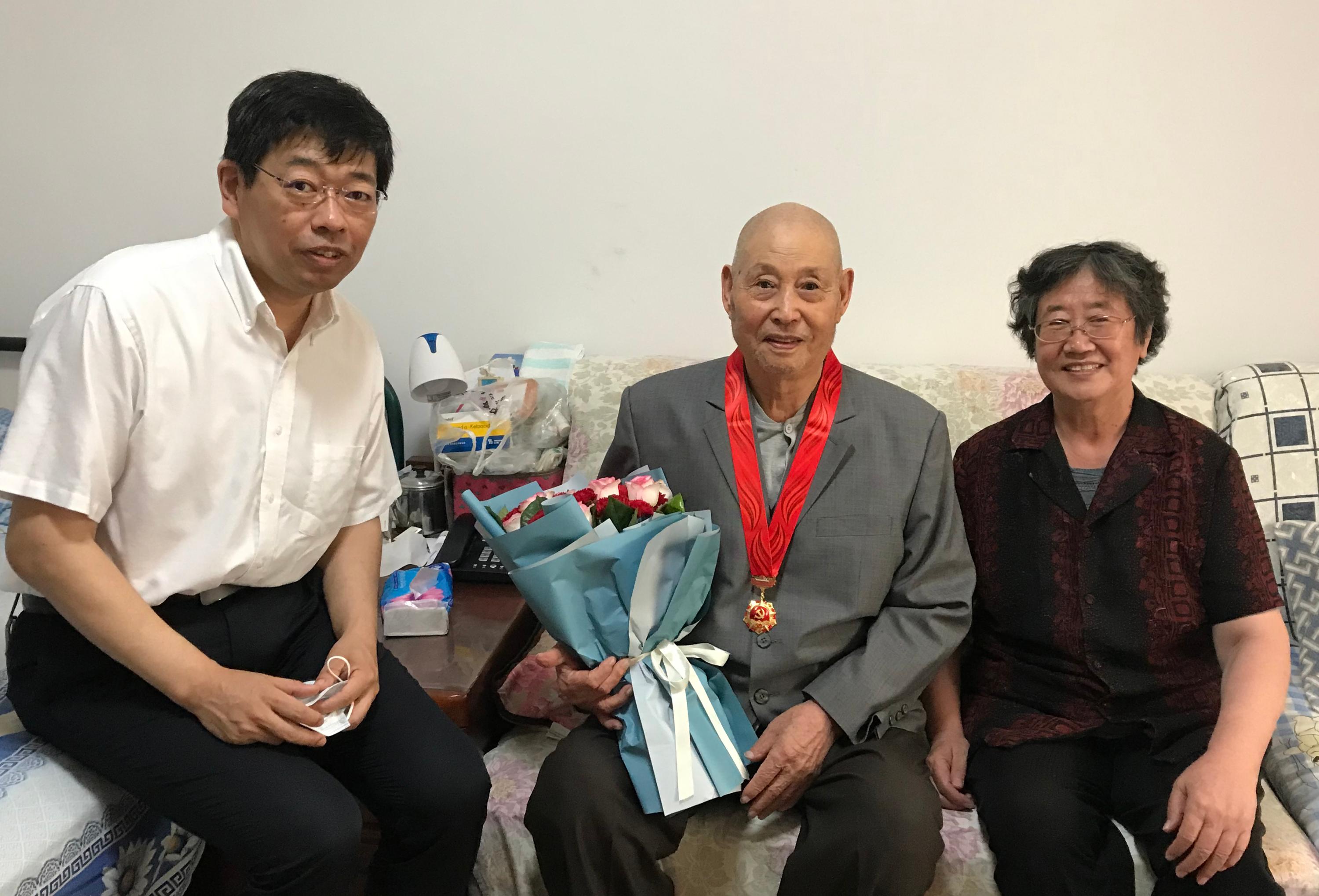 近日,信息科学技术学院党委书记魏中鹏代表学院党委,电子学系离退休支部郭瑛、赵伊丽、王晶云三位支委代表支部全体党员去探望了郝老师并送上“光荣在党五十年”纪念章。