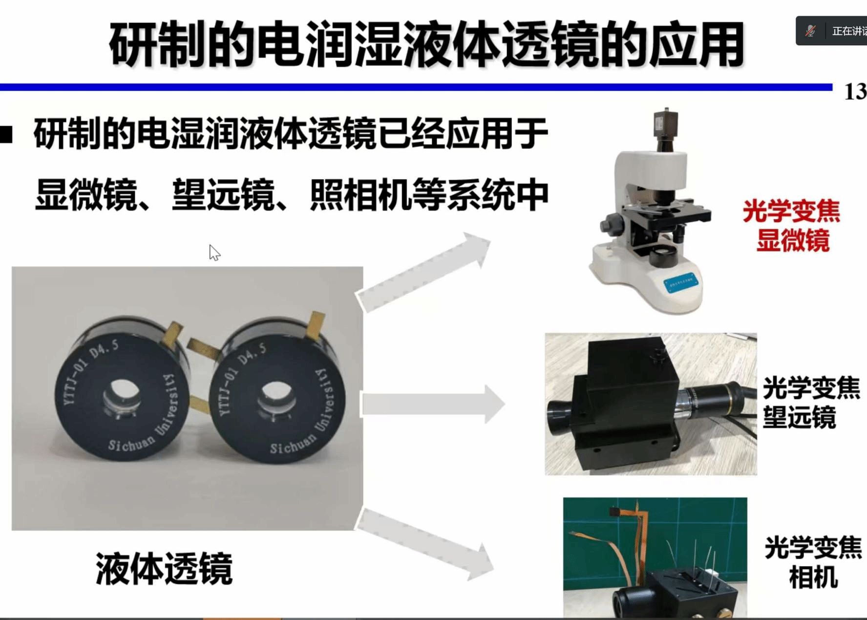 基于该液体透镜,王教授研究组首次在国际上研制出基于液体透镜的连续光学变焦显微镜,并且能实现矫正像差。