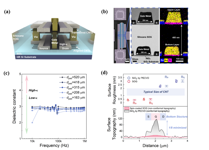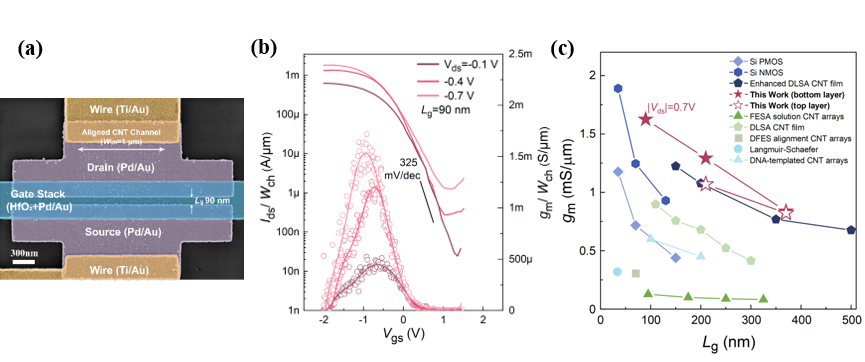 图1:高质量层间工艺与碳管晶体管单片三维集成
