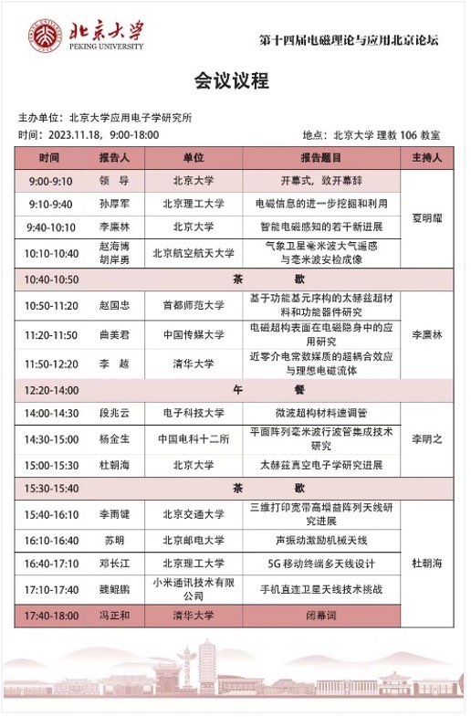 2023年11月18日,第十四届电磁理论与应用北京论坛在18漫画