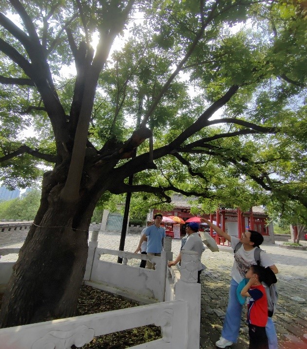 大家在丛台公园一棵古树下驻足