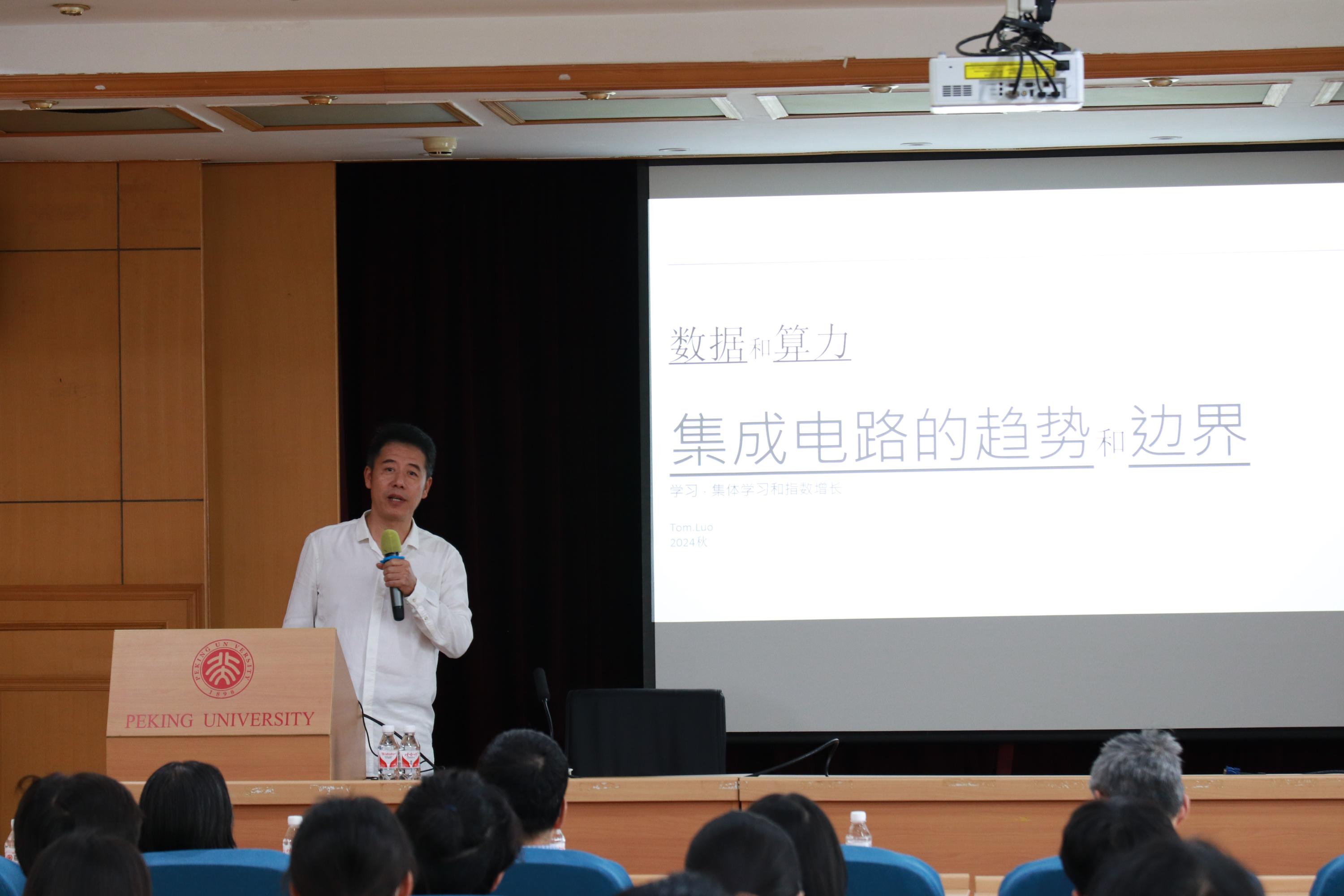 2024年9月27日下午,18漫画 前沿论坛第70期讲座成功举办。本次讲座邀请了芯动微电子科技(北京)有限公司制程整合和商务拓展副总罗彤先生。罗总为大家分享了题为“数据和算力—集成电路产业未来的趋势和边界”的精彩报告。本次报告由18漫画 陈清教授主持,70多名师生参与了本次讲座。