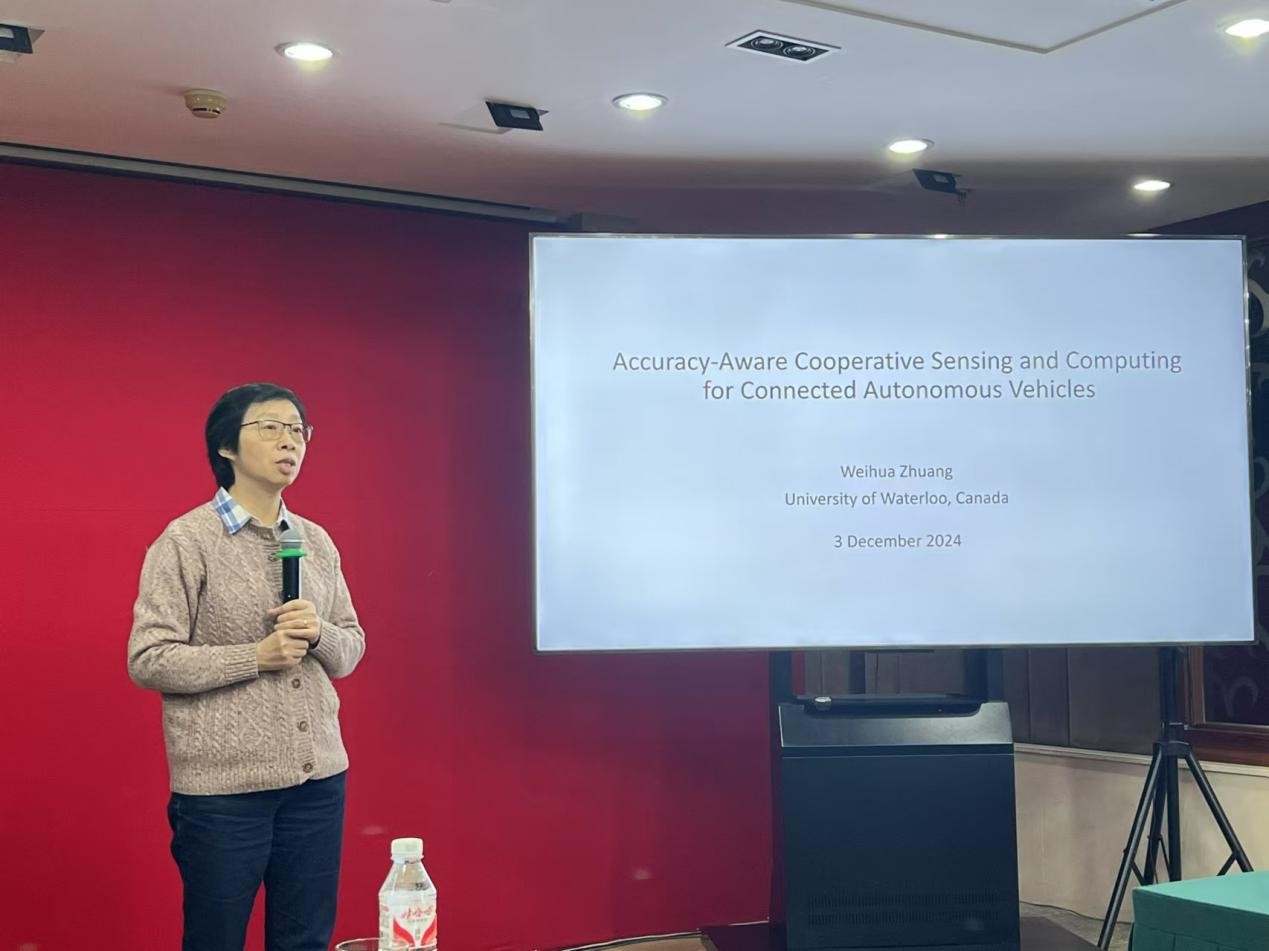 报告中,庄院士围绕网联自动驾驶车辆(CAV)领域的技术挑战、协作模型及数据选择与网络资源分配方案进行了深入阐述。她指出,随着5G/6G时代的到来,人工智能将在物联网和智能网联系统等领域发挥关键作用,而自动驾驶正是其中的重要应用场景之一。可通过人工智能驱动的协作感知技术实现CAV高效协作与精准感知。