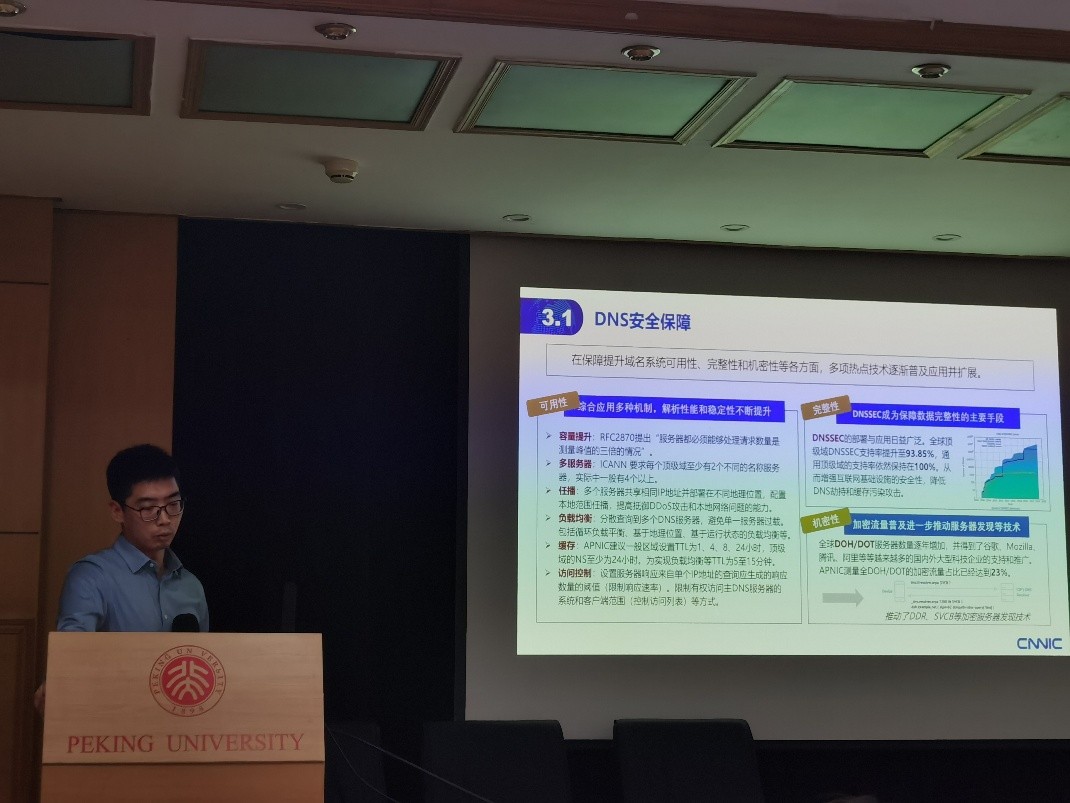 延主任首先介绍了国家互联网络信息中心(CNNIC)的基本情况,包括其发展历程和主要职责。接着,他详细阐述了域名服务体系。他首先回顾了我国互联网从无到有、从小到大的30年高速发展历程,并指出域名作为互联网的重要基础资源之一,为互联网提供了关键的核心服务。随后,他给出了域名的定义:域名是在特定条件下,用于唯一标识一个对象的符合一定规则的字符串。在此基础上,他进一步引出DNS域名系统的定义,即一套将域名字符串映射到IP地址的系统。他还介绍了域名的历史,从早期直接使用IP地址定义设备名称,到出现使用专用软件进行分配和查询的DNS系统,再到DNS系统在美国的主导下不断完善和扩展至今。