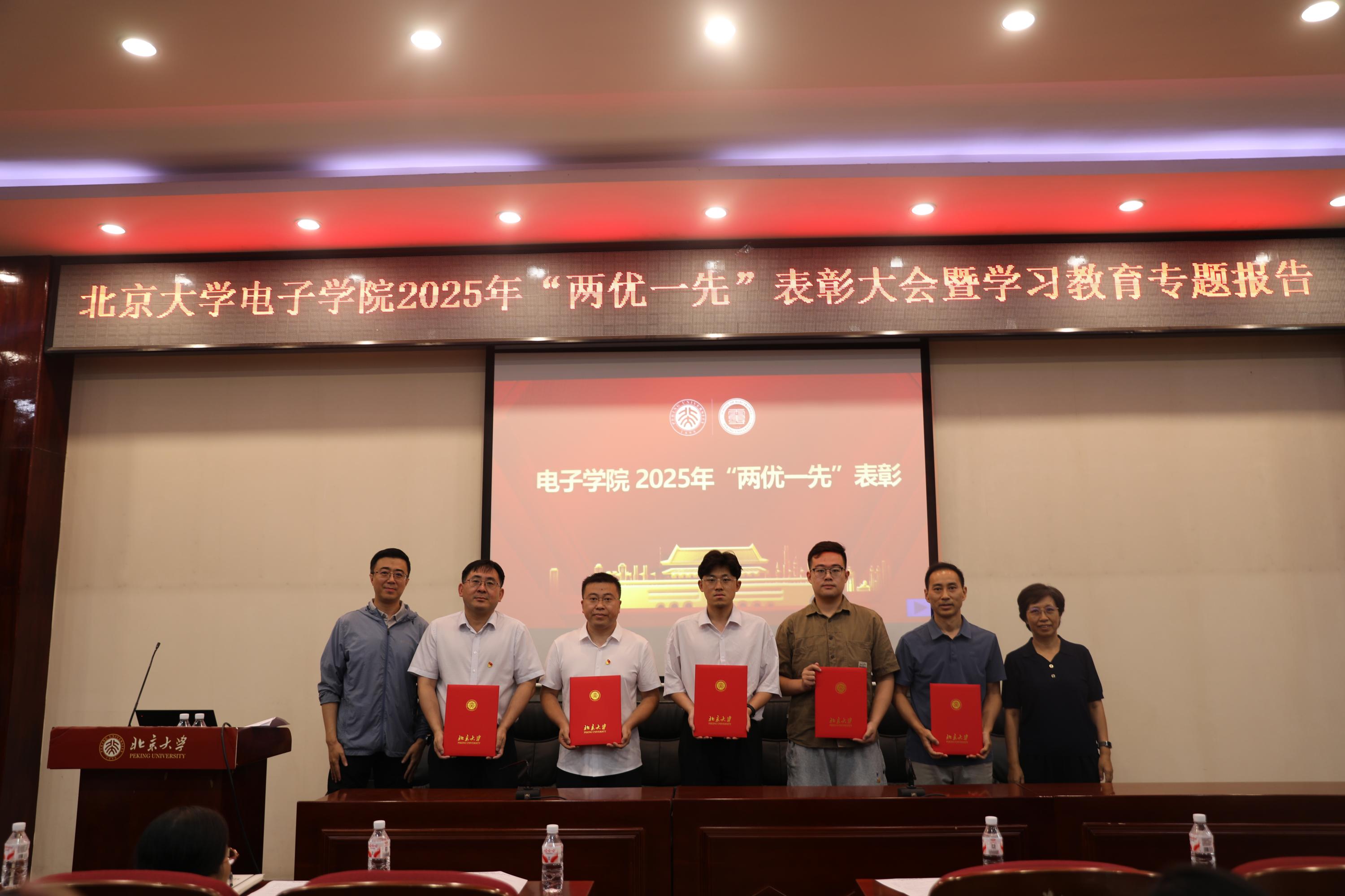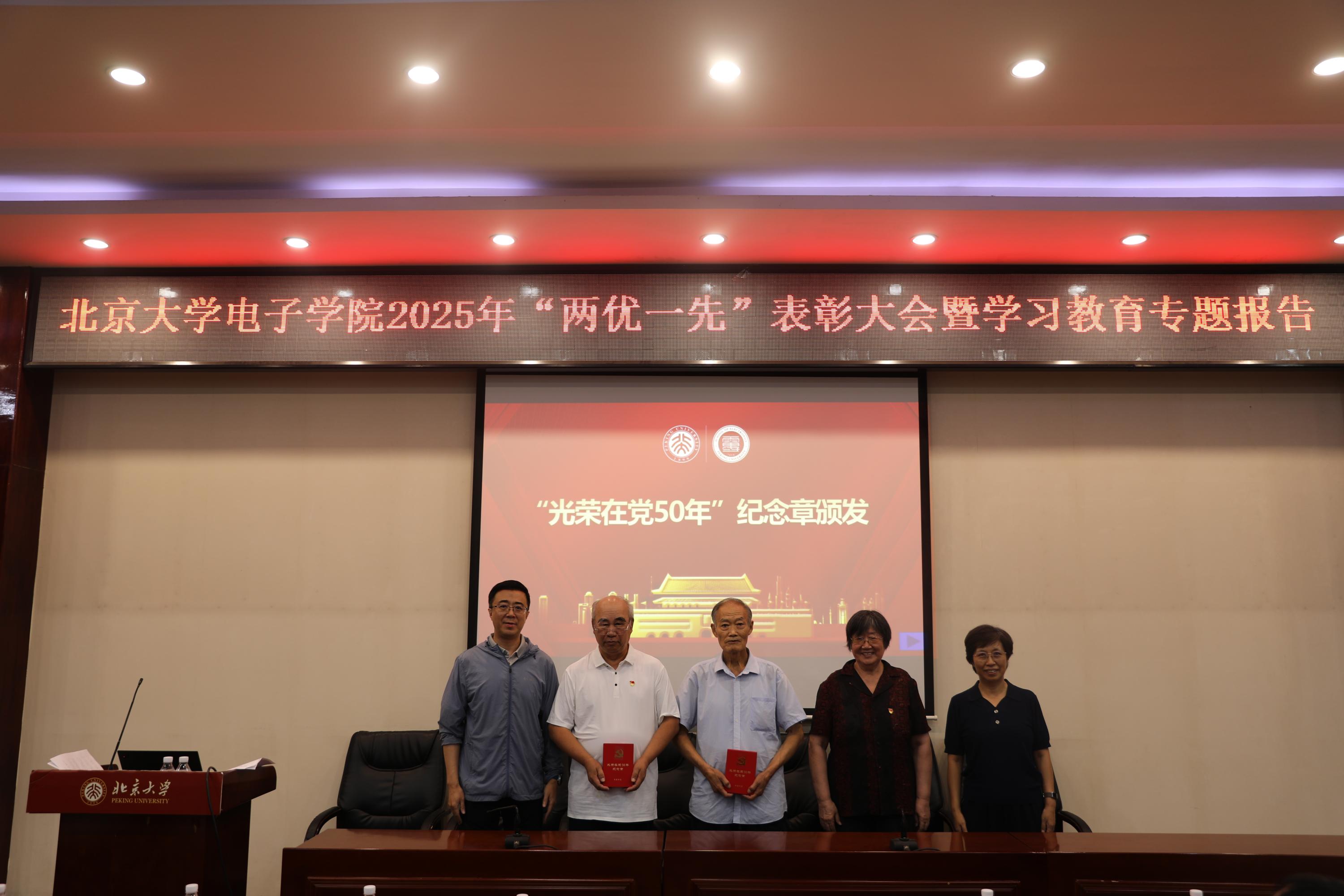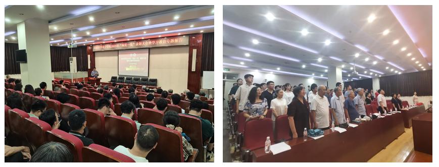 于7月3日下午在理科二号楼2129阶梯教室召开“两优一先”表彰大会暨学习教育专题报告。大会表彰了“两优一先”获奖对象,为“光荣在党50年”老党员颁发纪念章,邀请专家作学习教育专题报告。学院党委书记冯梅萍,党委副书记程翔,副院长王兴军、魏贤龙,原信息科学技术学院党委书记郭瑛,以及新发展党员、师生党员等170余人参加了大会。大会由程翔主持。