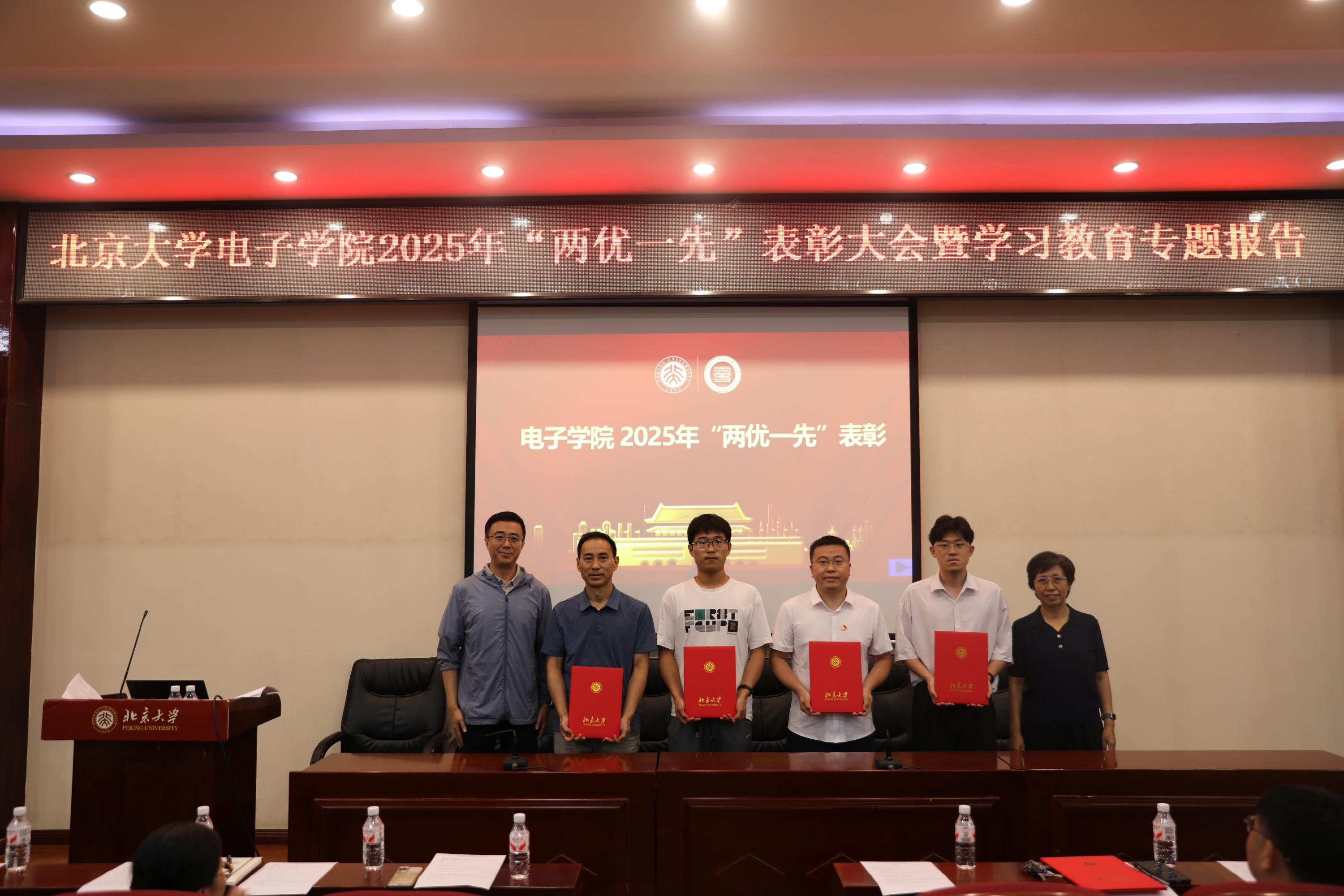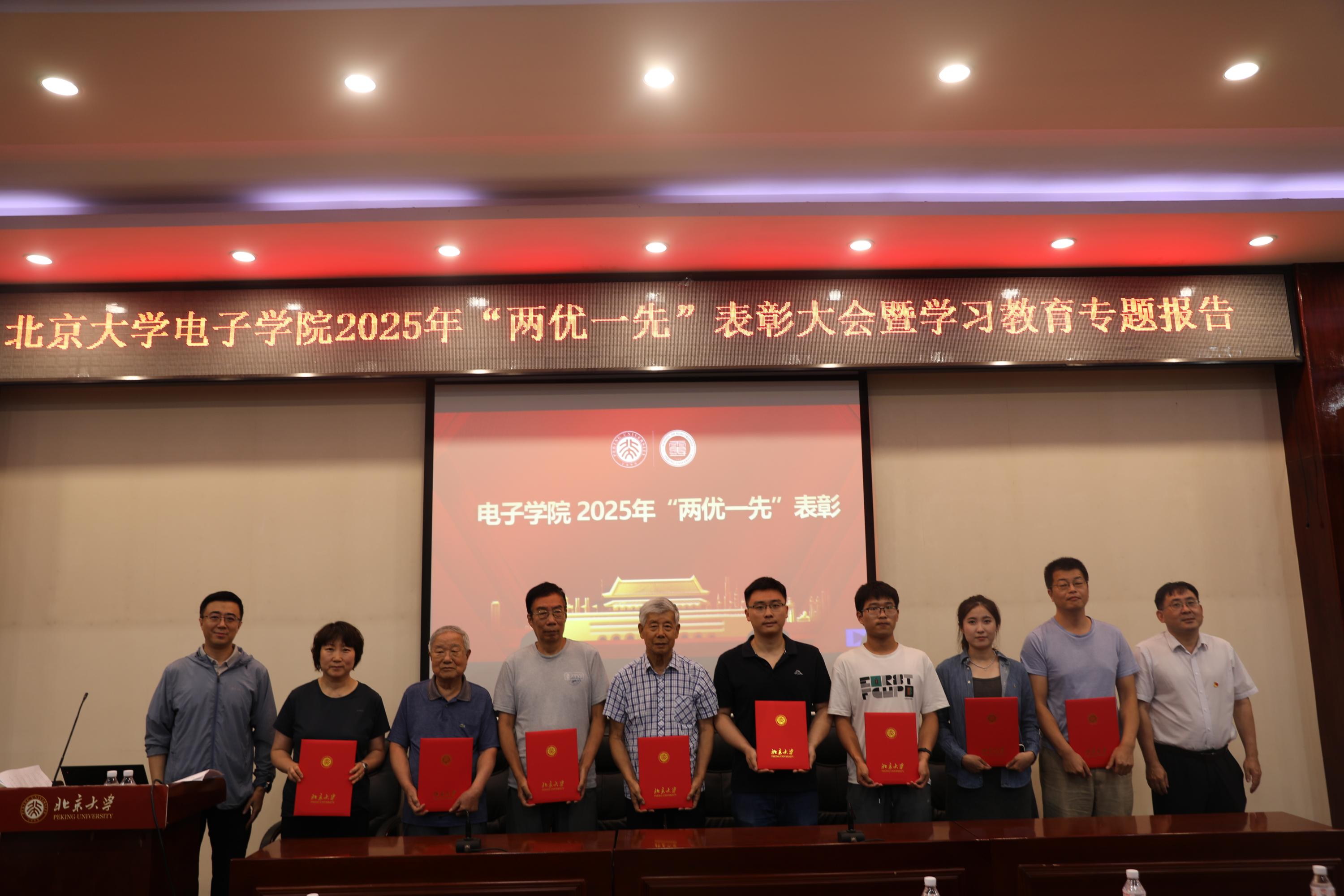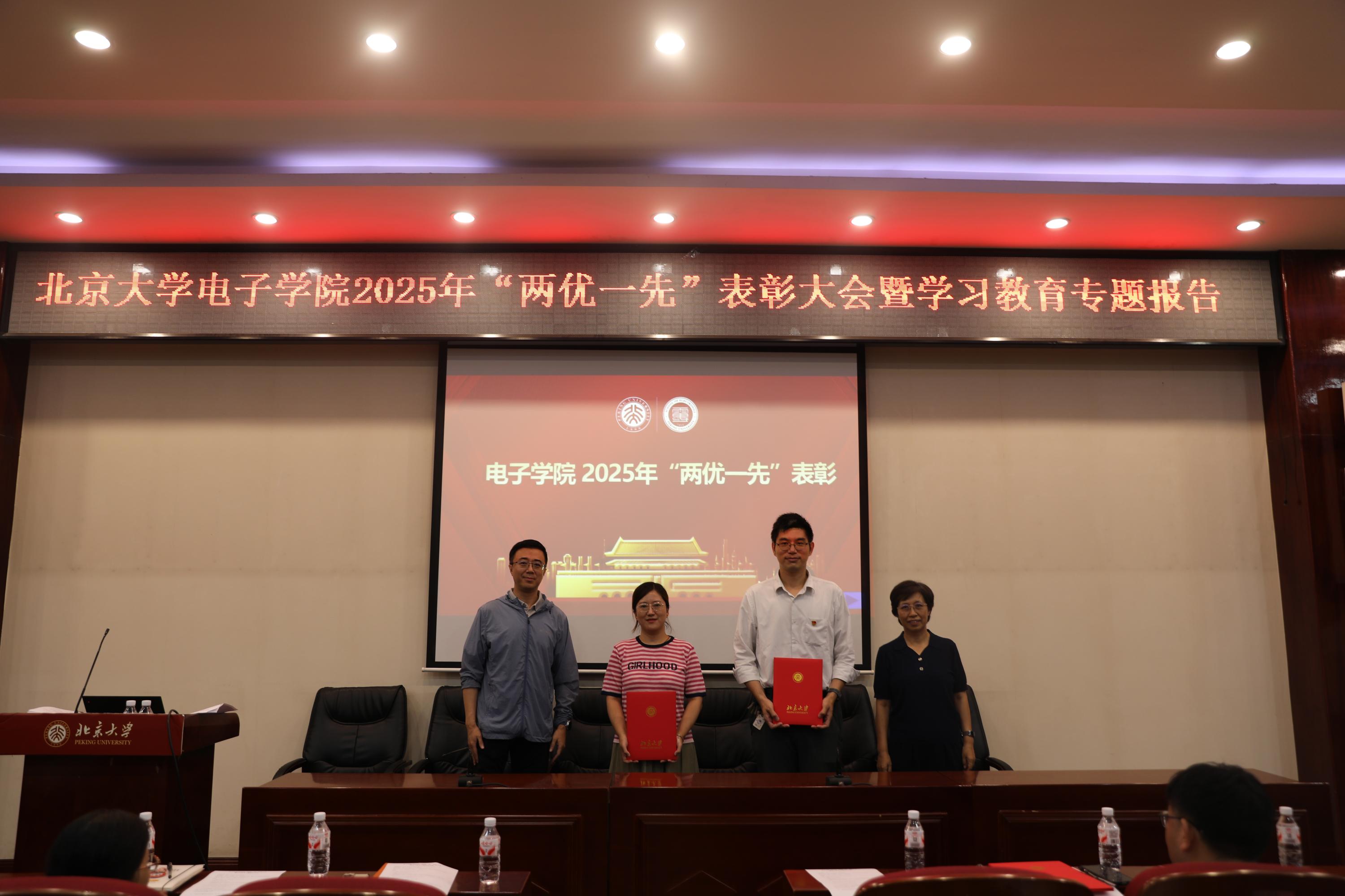 于7月3日下午在理科二号楼2129阶梯教室召开“两优一先”表彰大会暨学习教育专题报告。大会表彰了“两优一先”获奖对象,为“光荣在党50年”老党员颁发纪念章,邀请专家作学习教育专题报告。学院党委书记冯梅萍,党委副书记程翔,副院长王兴军、魏贤龙,原信息科学技术学院党委书记郭瑛,以及新发展党员、师生党员等170余人参加了大会。大会由程翔主持。