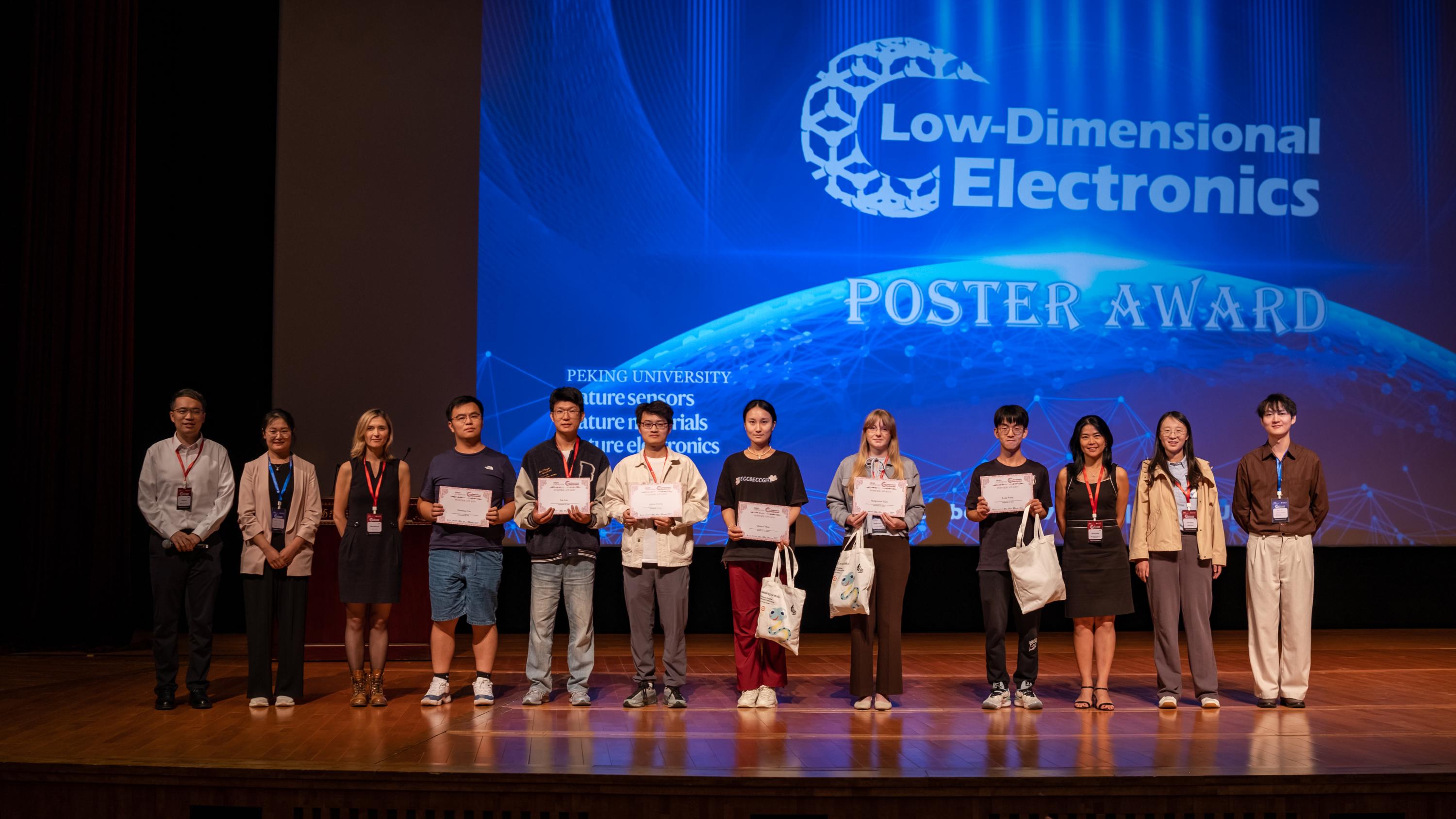 闭幕式上,首先举行了优秀墙报奖颁奖仪式,由自然系列期刊编辑为在学术墙报展示中表现突出的同学颁发奖励,鼓励青年学者的创新与探索。本次大会不仅推动了低维电子学领域的前沿探讨,也为青年科研人员搭建了展示与成长的平台,期待未来在低维电子学领域有更多的合作与突破。在热烈掌声中,本次大会圆满落幕。