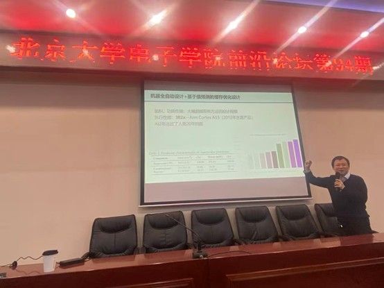 在互动交流环节,与会师生围绕“自动调试/自动修复低良率芯片”“机器自动设计如何吸收并结构化人类体系结构经验”等问题展开讨论。陈云霁研究员从顶层规划出发,表示处理器芯片内部的控制逻辑等硬件模块相对而言不能允许有任何硬件错误,而对于计算单元,特别是人工智能计算相关的模块,通过流片后对芯片重新训练和配置,反而有较大的错误冗余度和容忍度。同时,通过芯片封装前的功能测试和硬件错误定位、分析和软件纠错等方式,有望把芯片功能修正过来。