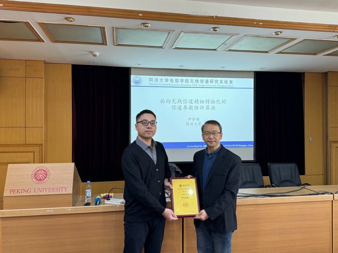 向尹学锋教授致谢,并为他颁发纪念牌。本次讲座系统展示了超大规模天线阵列与通信感知融合领域的前沿研究进展,深化了师生对近场信道建模、参数估计及车载雷达应用的理解。活动不仅拓展了学术视野,也促进了理论研究与工程实践之间的深入交流与思考。