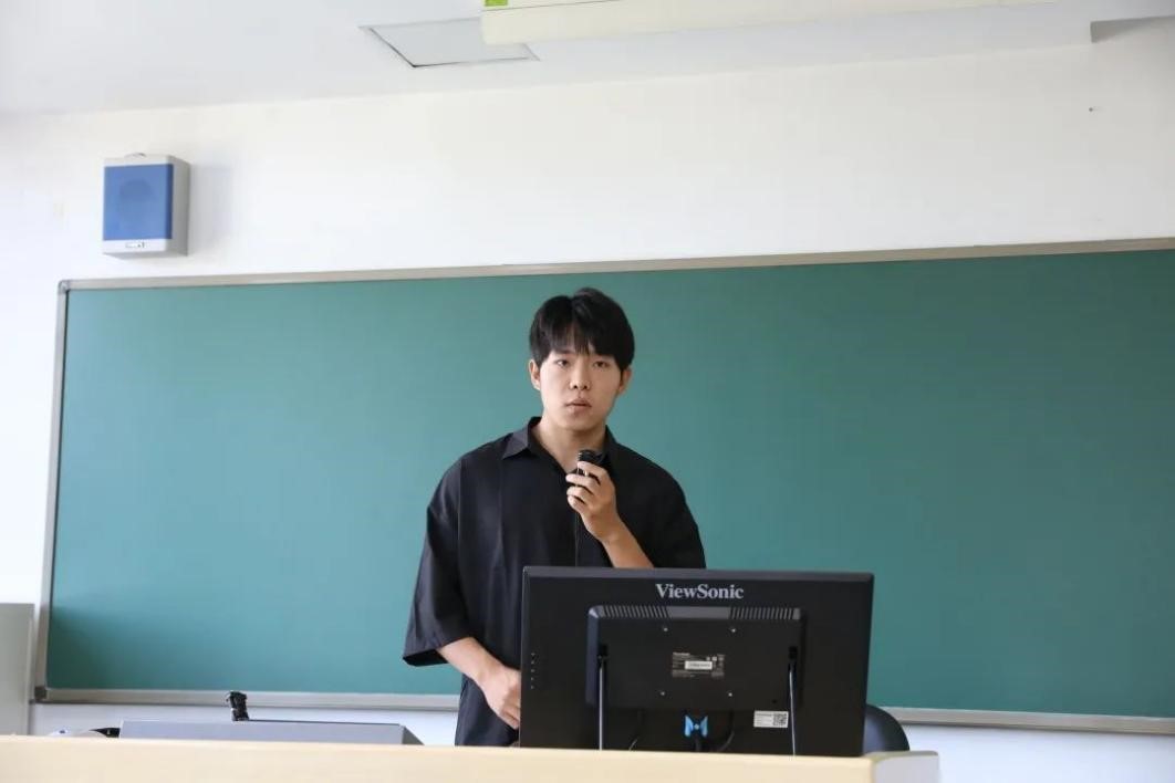 2020级硕士研究生李希仁向同学们介绍了电子学系团总支。他从党团共建、学术科创、外联交流、多彩活动的举办等方面回顾了过去一年里团总支的工作成果,并热情邀请同学们积极加入电子学系团总支大家庭。