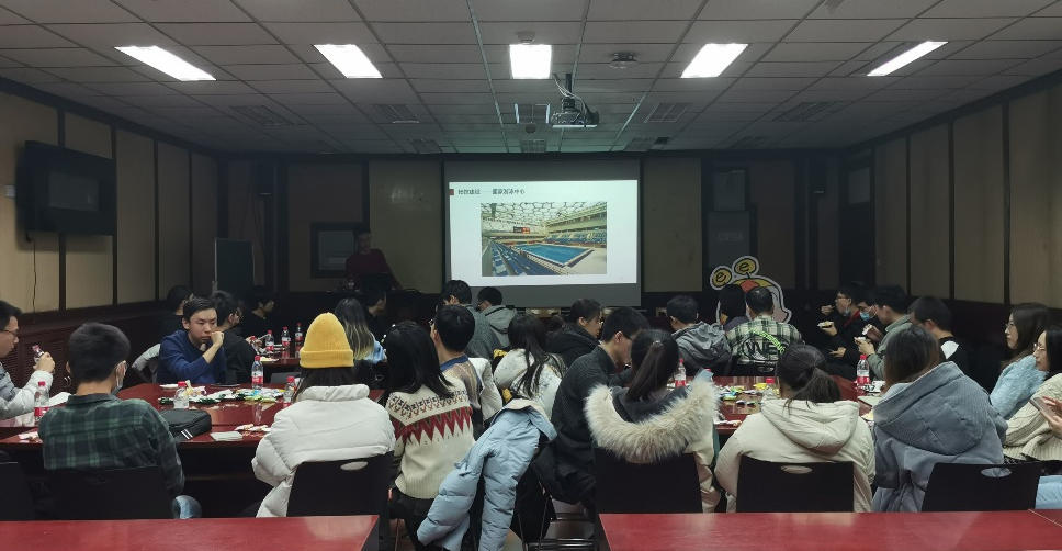 接着,冬奥志愿者余奕壕向大家讲述奥林匹克精神,和大家一起分享他成为志愿者的心路历程。在成为志愿者的路上,要经历层层筛选,同时还要兼顾科研,但是余奕壕同学都排除万难坚持了下来。此外,他也骄傲地向大家提到,北京成为唯一一座既举办夏奥,又将举办冬奥的“双奥之城”,表达了深深的民族自豪感和作为冬奥志愿者的历史使命感。他还向在座的大家阐述了“三亿人上冰雪”的意义,鼓励大家尝试冰雪运动,丰富课余生活。