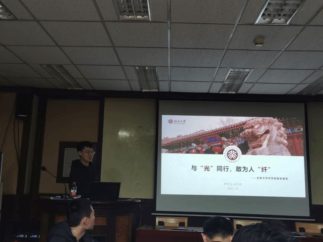 示范班集体”的荣誉,光纤班班长陈彦钧同学向各位骨干分享了以“与‘光’同行,敢为人‘纤’”为主题的班级建设经验:一方面要保证“上传下达”以及日常班级管理的效率,打牢班级建设的基石;另一方面要充分发挥班内组织和班级骨干的作用,立足研究生纵向班的特点,开展以课题组、同年级、同实验室、同寝室及全体性的各类活动,为大家提供更多的交流平台。还要主动发挥研究生班级的特色和优势,把科研融入集体活动,让党团支部激发带动班级活力。