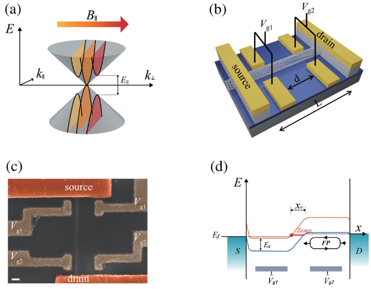 图1.基于单根碳纳米管构筑的双侧栅p-n结