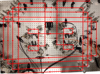 (入射的81个激光脉冲先在四个大环路腔中相干叠加,成为9个脉冲;然后再在四个小腔中相干叠加为一个脉冲)