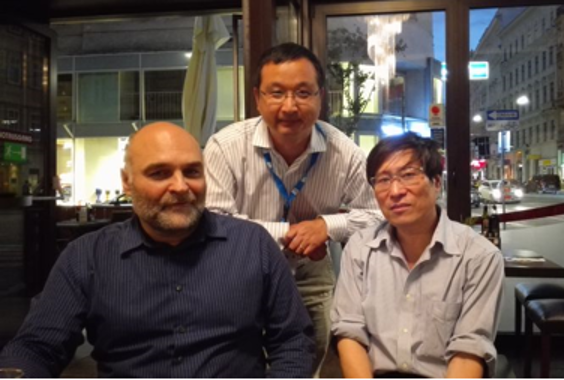 图5. 论文部分作者(从左至右):密西根大学Galvanauskas教授、德国DESY常国庆研究员、18漫画