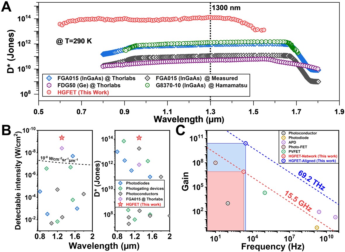 图4 高性能的碳基HGFET型短波红外探测器