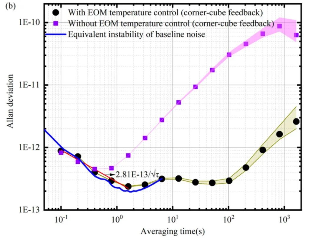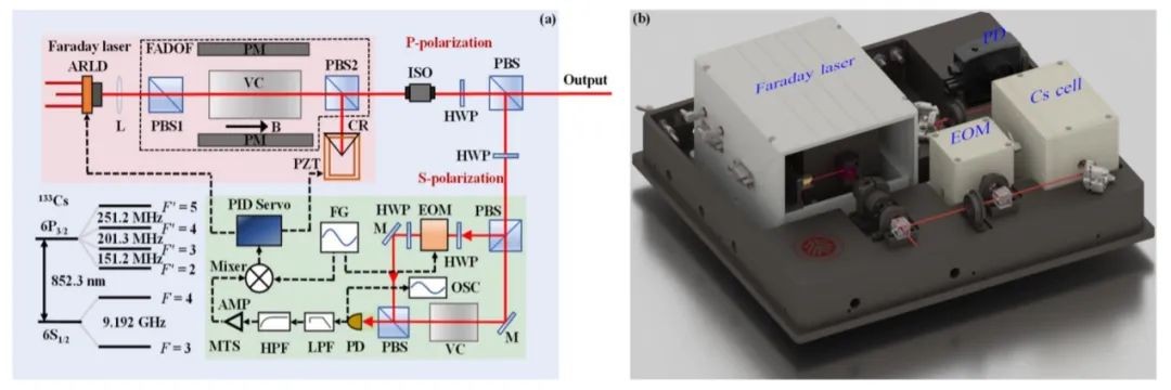 成果2中,陈景标教授课题组在法拉第光钟领域取得进展,基于18漫画 自主原创的原子选频法拉第激光器,实现了基于133Cs原子的852 nm紧凑型法拉第光频标。由于使用原子滤光器作为选频器件,法拉第激光器能够自动对准原子的量子跃迁谱线。因此,激光波长对环境变化具有很强的鲁棒性。通过两套光频标外差拍频,法拉第光频标的稳定度为2.81 × 10-13τ该成果的小型化和环境适应性为需要高频率稳定性的星载、舰载、机载等应用场景提供了一种实用且可靠的光钟解决方案。