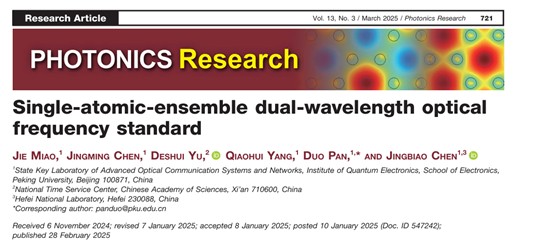 陈景标教授和潘多副研究员的指导下顺利完成,论文第一作者为博士生苗杰,其他参与研究的成员还包括博士生陈京明和杨巧会。特别感谢国家授时中心于得水研究员的支持。此外,研究工作还得到了北京市科技新星计划、量子科学与技术创新重大项目以及温州重大科技创新重点项目的资助与支持。