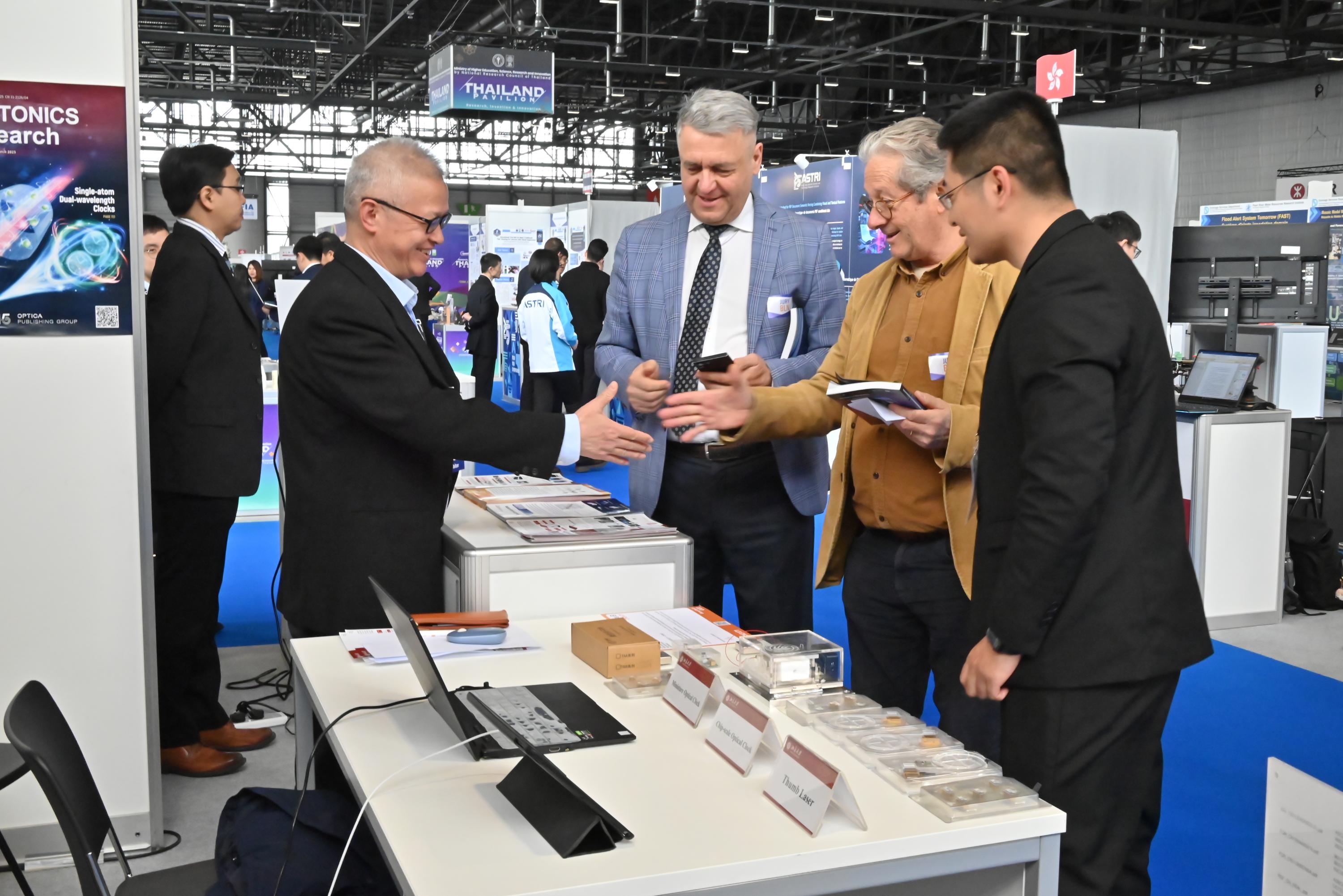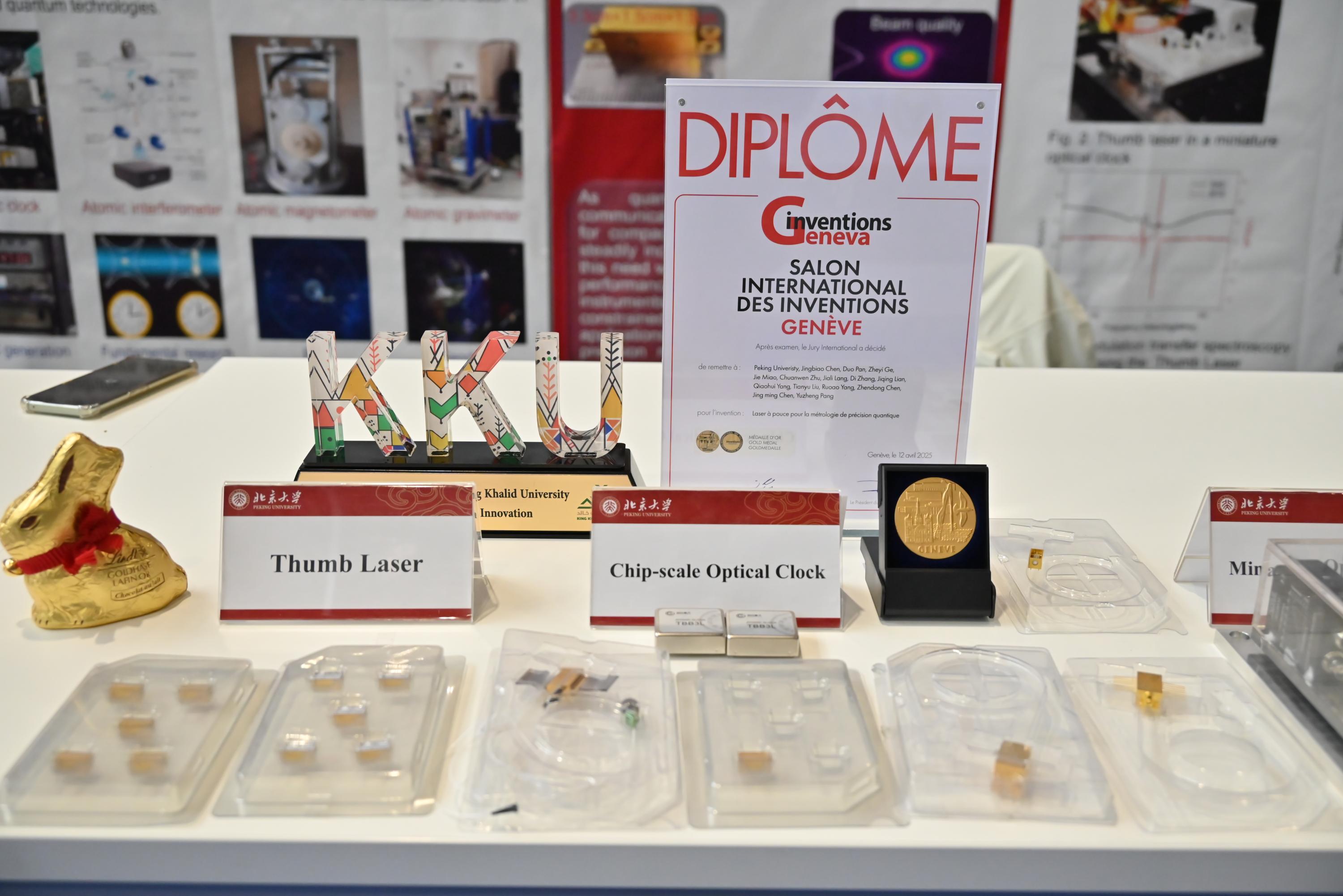 在此次日内瓦国际发明展上,陈景标教授及博士研究生秦晓敏、苗杰,热情地向参观者介绍成果,受到瑞士、沙特阿拉伯、俄罗斯、泰国等各国家与会人员的广泛关注和高度评价。经评审,陈景标教授团队研发的“原子选频激光器”和“大拇指激光器”两项创新成果从全球上千件参展项目中脱颖而出,荣获金奖。这两项金奖成果展现了中国团队在激光稳频技术上的突破性创新,为助力实现我国量子精密测量领域高水平科技自立自强提供了有力支撑。
