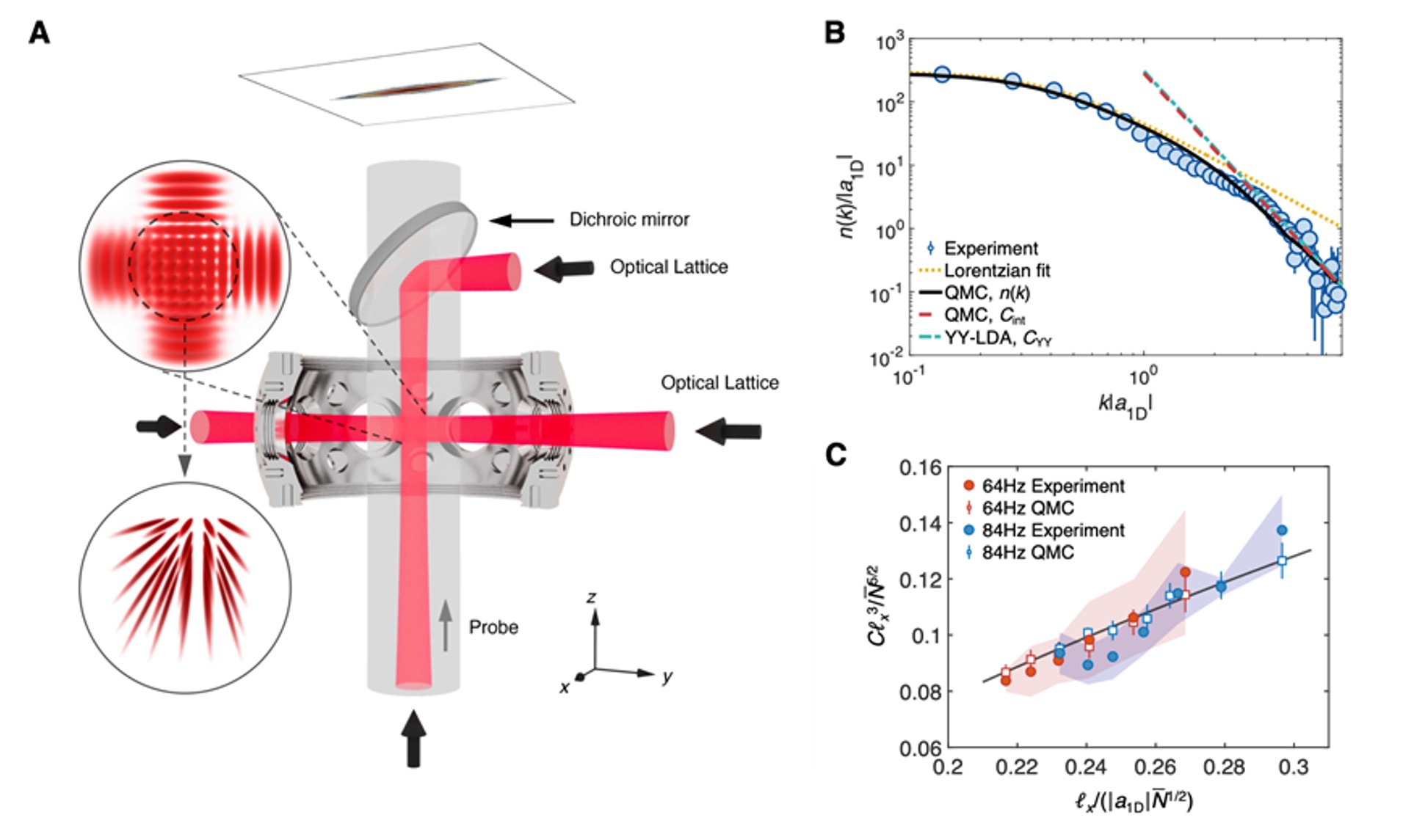 图1 (A) 开展檀接触量测量的一维强关联玻色气体量子模拟实验平台示意图。