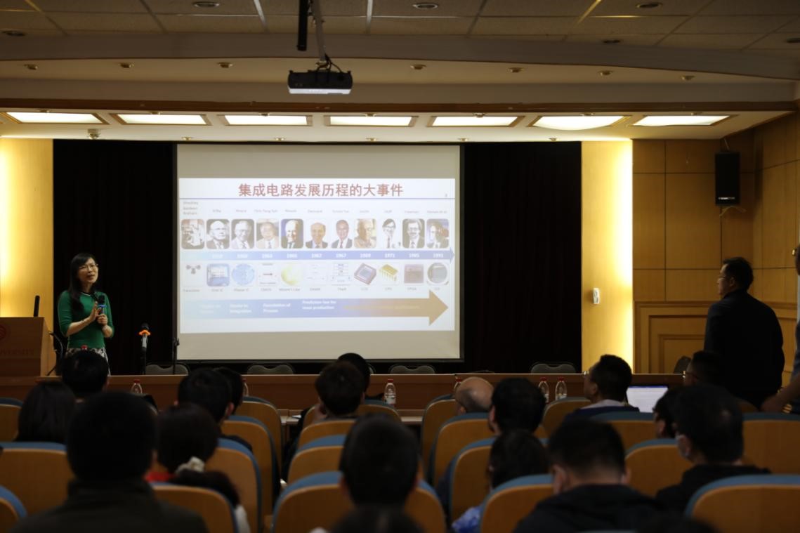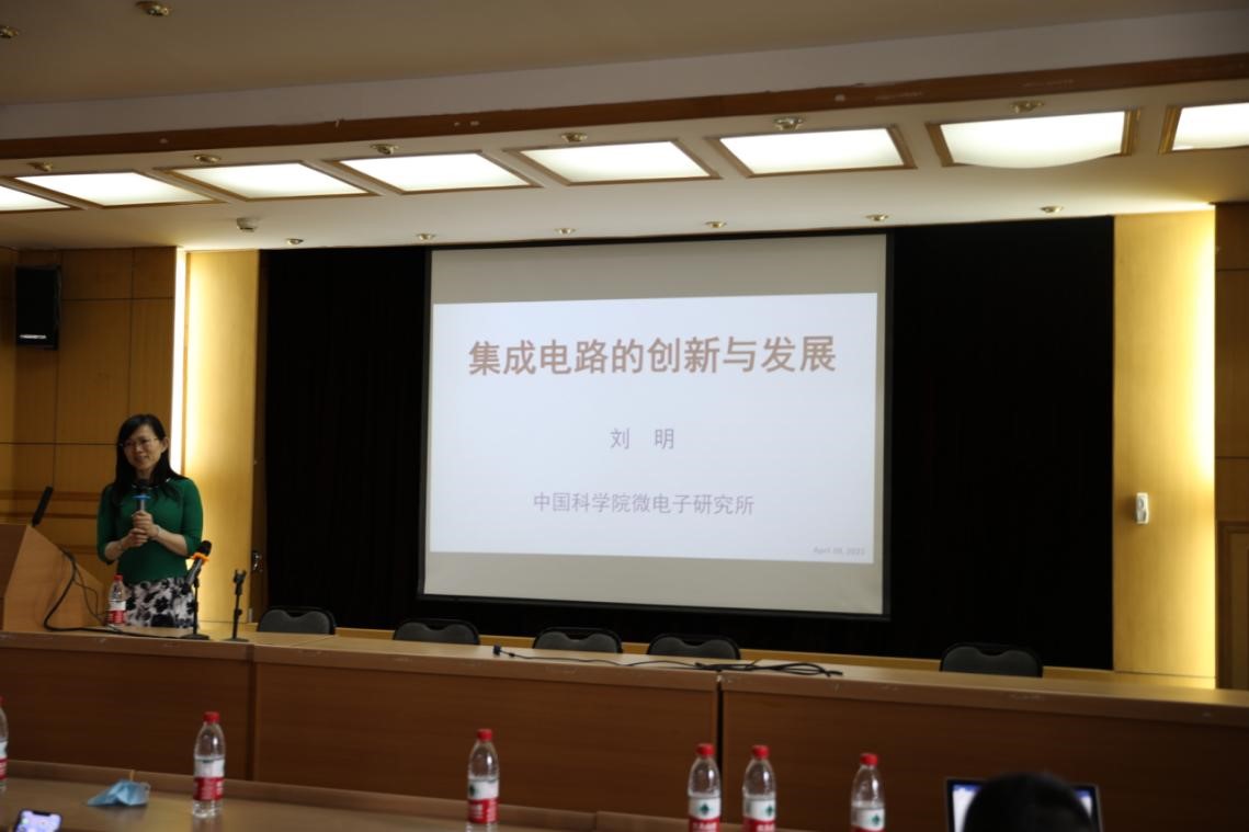理科二号楼2736报告厅顺利开讲。本次讲座的主讲嘉宾为中国科学院院士、中国科学院微电子研究所刘明研究员,报告主题为“集成电路的创新与发展”,讲座由电子学系副系主任张志勇教授主持,全系100余名师生到场聆听了报告。
