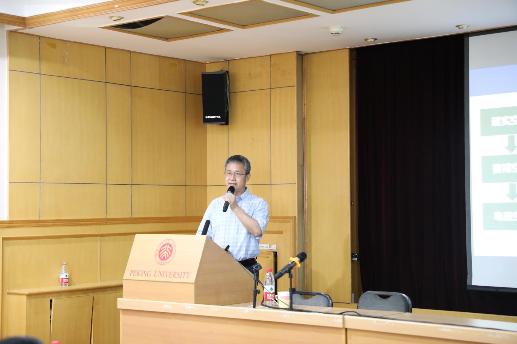 理科二号楼2736报告厅隆重举行。本期论坛邀请到中国科学院院士、东南大学崔铁军教授作主题为“电磁空间的表征与调控”的学术报告。讲座由电子学系应用电子所李廉林老师主持,近百名师生到场聆听了报告。