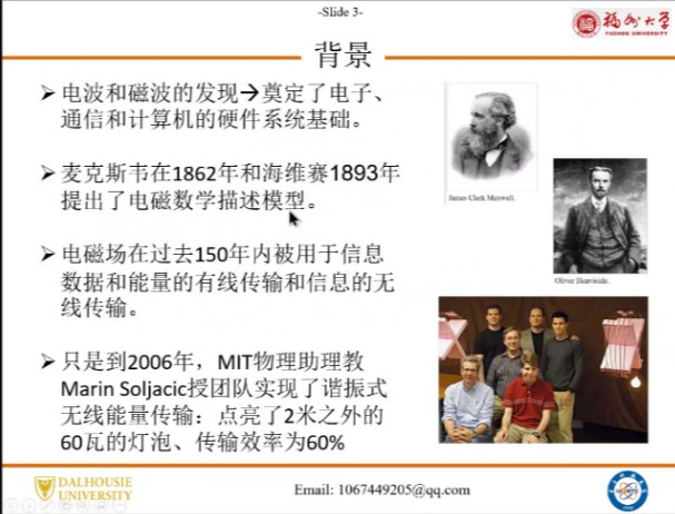 随后,陈志璋教授介绍了中长距离无限能量传输相关的技术。在水下充电、心脏起搏器充电等有线充电难以解决的领域,无线充电存在巨大的应用潜力。