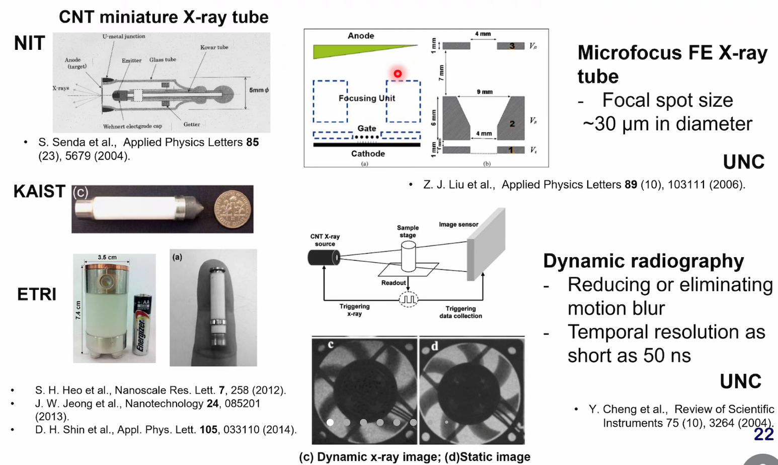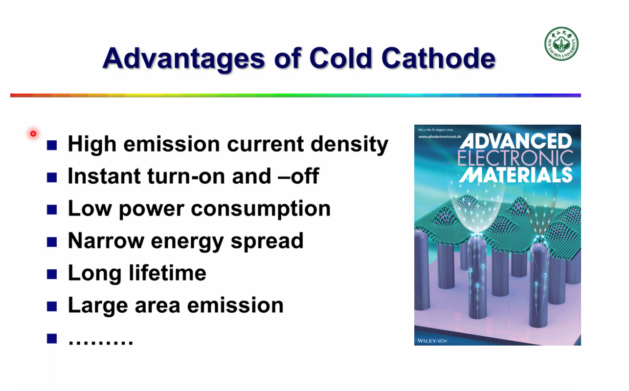 析。冷阴极可应用于固态电子器件和热阴极所不能解决的关键领域,通过向小型化、集成化以及大面积器件等方向发展,推动冷阴极技术的创新应用。陈教授还介绍了应用冷阴极技术的诸多场景,重点指出将实现冷阴极技术在X射线源方面的应用意义重大。传统的热阴极X射线源采用热电子轰击金属靶,功耗较高,预热时间长,寿命不长,散热困难,体积较大。若使用冷阴极制造射线源就能实现强度可控、能散窄、微焦斑、快速开关、快速成像、低功耗、小型化、长寿命等优势。行业里面基于冷阴极X射线管已经实现原理性展示和应用。
