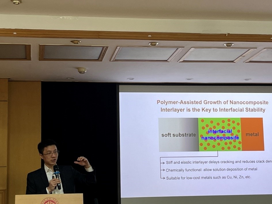 首先,郑教授介绍了可穿戴电子的发展背景以及面临的挑战。郑教授指出柔性电子需要具备穿戴的舒适性和安全性,具备良好的电学性能,并且可以和目前的制作工艺进行整合。