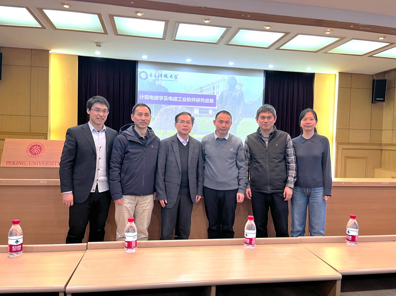 在最后的提问环节,李斌教授与在座的老师同学们进行了进一步交流,对于大家提出的问题也做了详细的回答。李教授表示计算电磁学是一门深奥且值得深入研究的交叉学科,未来他将致力于进一步发展、完善和加快推广摇光高频电磁软件,为我国的国防安全加筑防线。李教授风趣幽默的讲座和在计算电磁学及电磁工业软件方面做出的重要贡献获得了热烈的掌声。最后李教授和部分参会专家进行了合影。