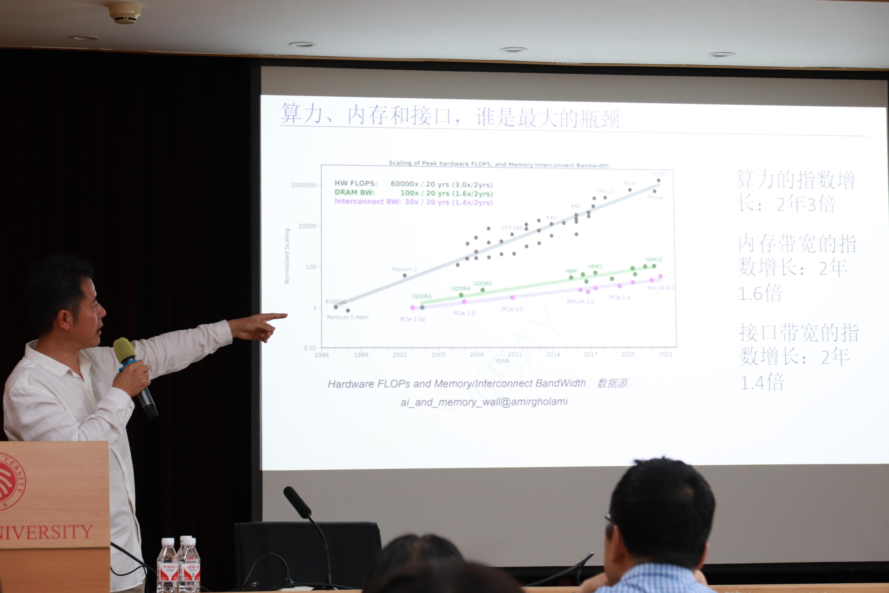 然后,罗彤副总从经济学的供应和需求的角度为大家梳理了集成电路产业数十年来的发展路径。罗彤副总指出,需求并非来源于社会中的个体,而是来源于“计算”、“传输”、“存储”等数据需求。在集成电路产业发展初期,伴随着计算机科学的缓慢发展速度,上述数据需求能够很好地被芯片的微缩(Scaling down)所满足,即微缩和生产的工艺技术及电路结构等优化能够“供应”数据的需求。然而,随着计算机科学等学科的发展,尤其是近年来基于大语言模型的AI发展,数据量不断上升且计算速度要求不断提高,芯片的微缩不能够完全“供应”这些需求,导致集成电路产业遇到了“边界”。存储产品和数据需求之间供不应求的关系是未来电子领域的一大瓶颈。