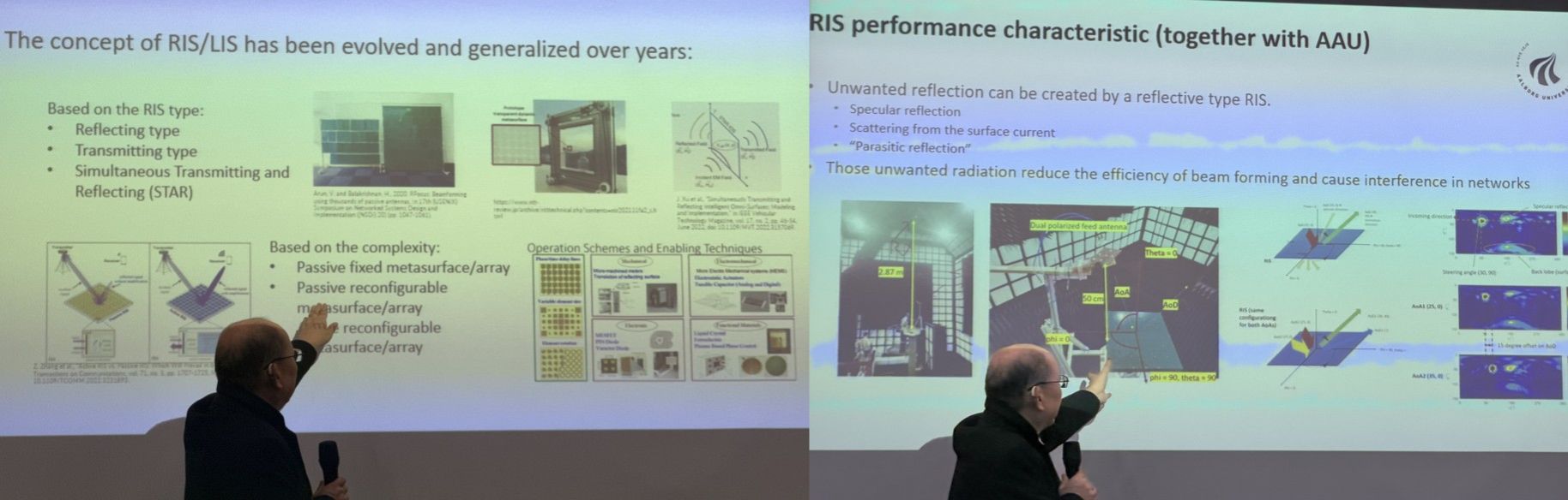 在可重构智能表面(RIS)专题中,报告区分反射型、透射型及同时透射/反射(STAR)等形态,并按复杂度梳理被动固定、被动可重构、主动可重构等路线,涵盖移相阵列等不同实现方式。结合与奥尔堡大学的协同测试,指出RIS除期望反射外还可能产生镜面反射、表面电流散射与“寄生反射”,需在方位、极化、口径匹配与码本控制上进行系统级联合设计与标定。RIS适用于补充覆盖、节能增益与室内引导等复杂场景。