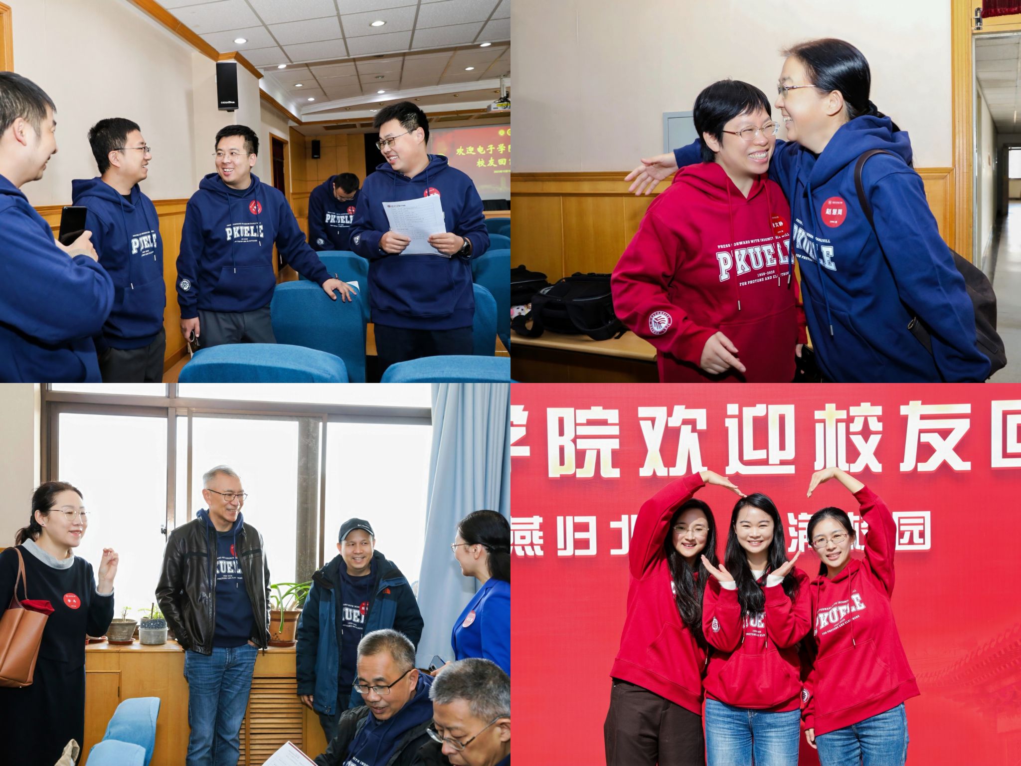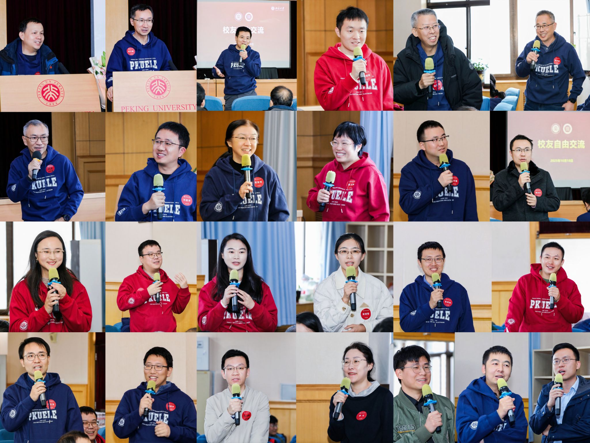 在自由交流环节,校友们畅所欲言,深情回顾在燕园求学的点滴岁月,分享各自在学术界、产业界、基层一线等不同岗位的成长心得与人生感悟。有的校友以“在北大遇见恩师、友情与爱情”为引深情回顾了四年的求学生涯,有的分享了将专业知识应用于乡村振兴、科技强国建设的实践案例;还有校友表达了愿为学弟学妹提供实习机会、就业指导的反哺之情……现场气氛温馨而热烈,笑声与掌声此起彼伏,勾勒出北大电子人的生动群像。